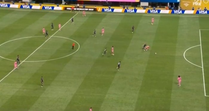 迈阿密国际出场阵容:19-乌斯塔里、18-阿尔巴、37-法尔肯、32-阿伦、57-韦甘特、8-特拉斯科、5-布斯克茨、55-小雷东多、21-阿连德、9-苏亚雷斯、10-梅西