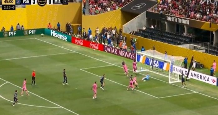 6月30日讯 北京时间6月30日凌晨0时整,2025年世俱杯1/8决赛在梅赛德斯-奔驰体育场展开角逐,巴黎圣日耳曼对阵迈阿密国际。上半场若奥-内维斯梅开二度,布斯克茨失误被断,杜埃造阿维莱斯乌龙,阿什拉夫破门,巴黎圣日耳曼暂时4-0领先迈阿密国际,巴黎全面压制控球超7成,迈阿密半场0射门。